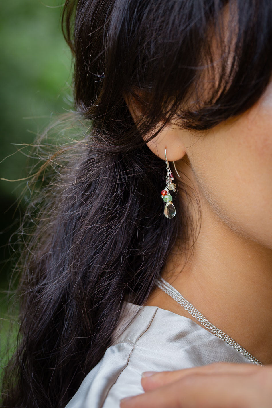 Gentle Breeze Peach Moonstone, Czech Glass, Carnelian Cluster Earrings