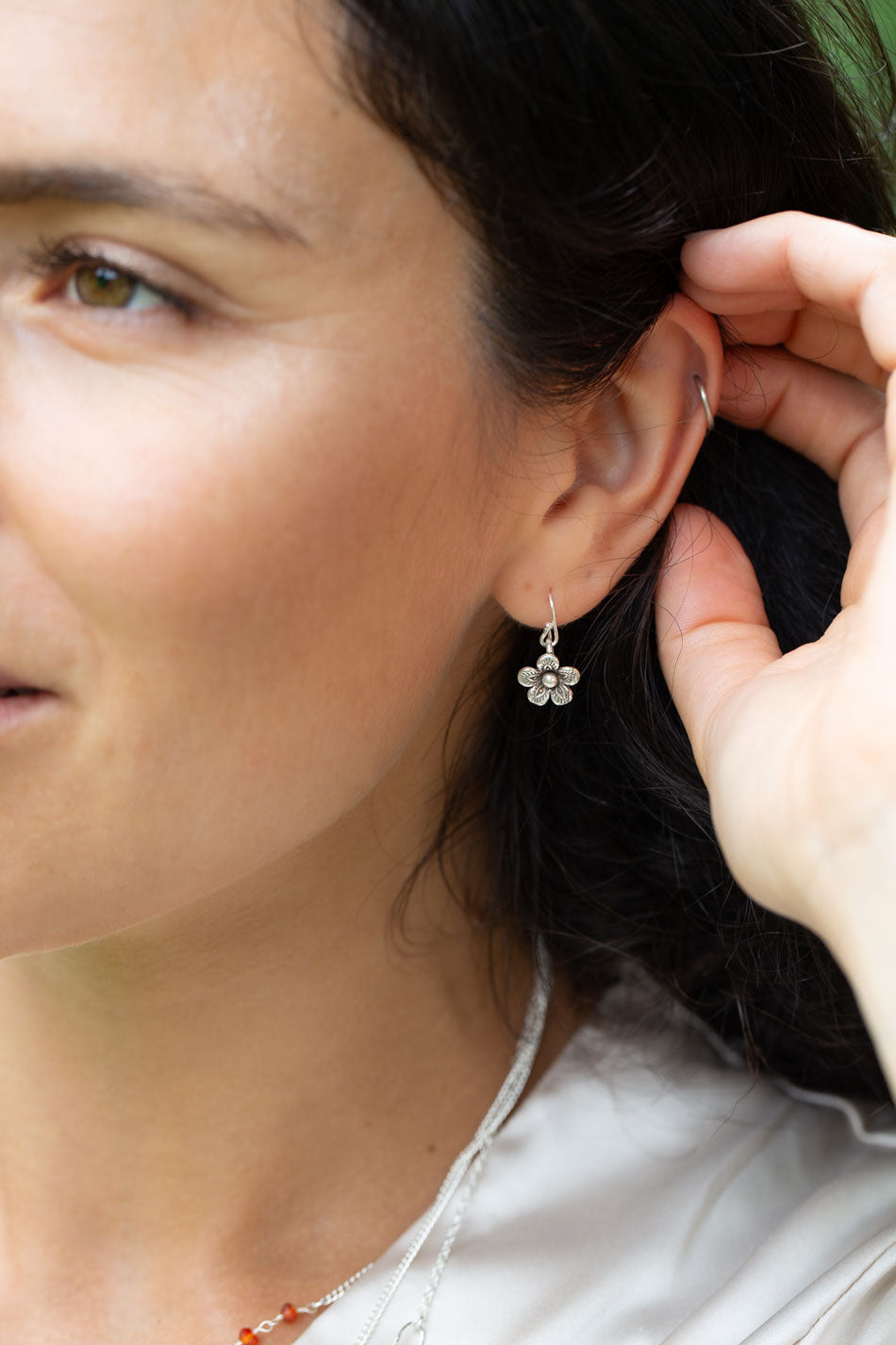 Gentle Breeze Sterling Silver Flower Simple Earrings