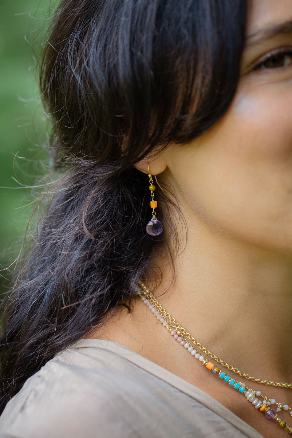 Joy Amethyst Briolette, Shell, Czech Glass Dangle Earrings