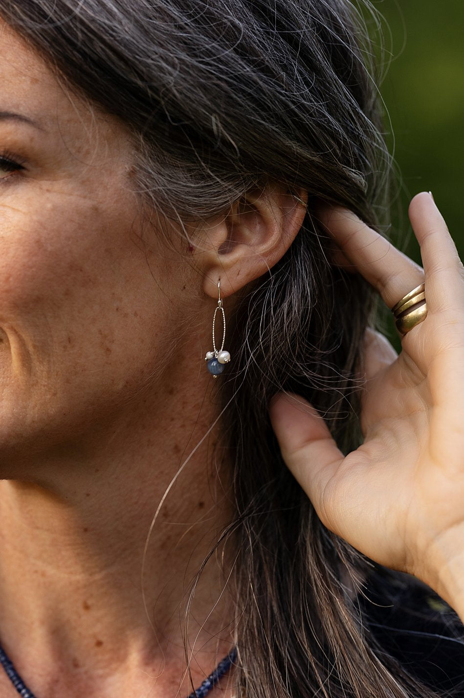 Seaside Kyanite, Pearl, Iolite Cluster Earrings