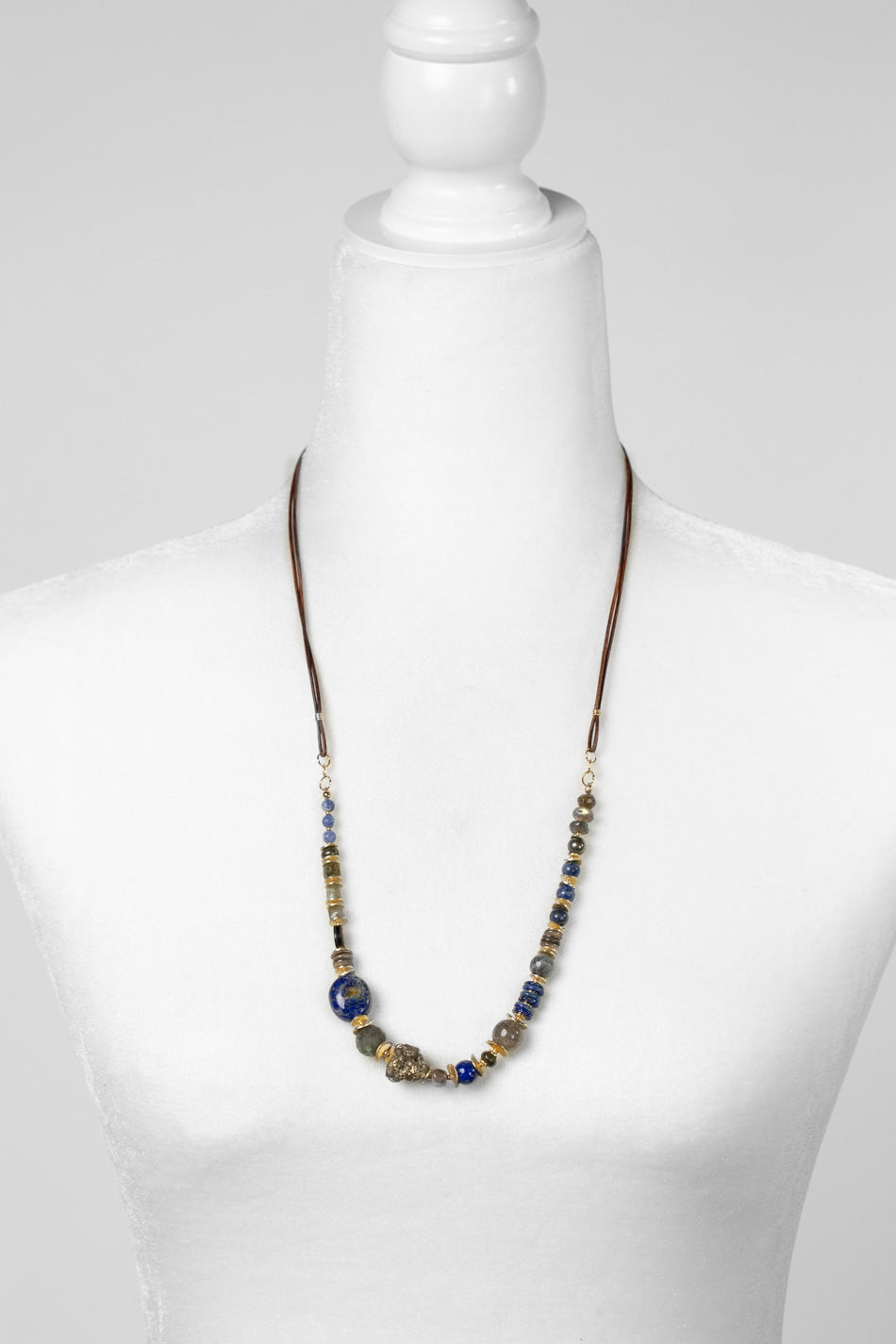 Blue Moon 27.5-29.5" Labradorite, Abalone Shell, Sodalite, Lapis Lazuli, Pyrite Collage Necklace