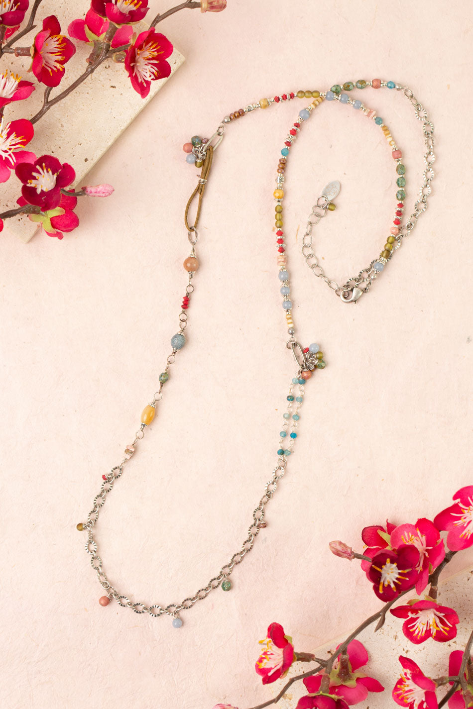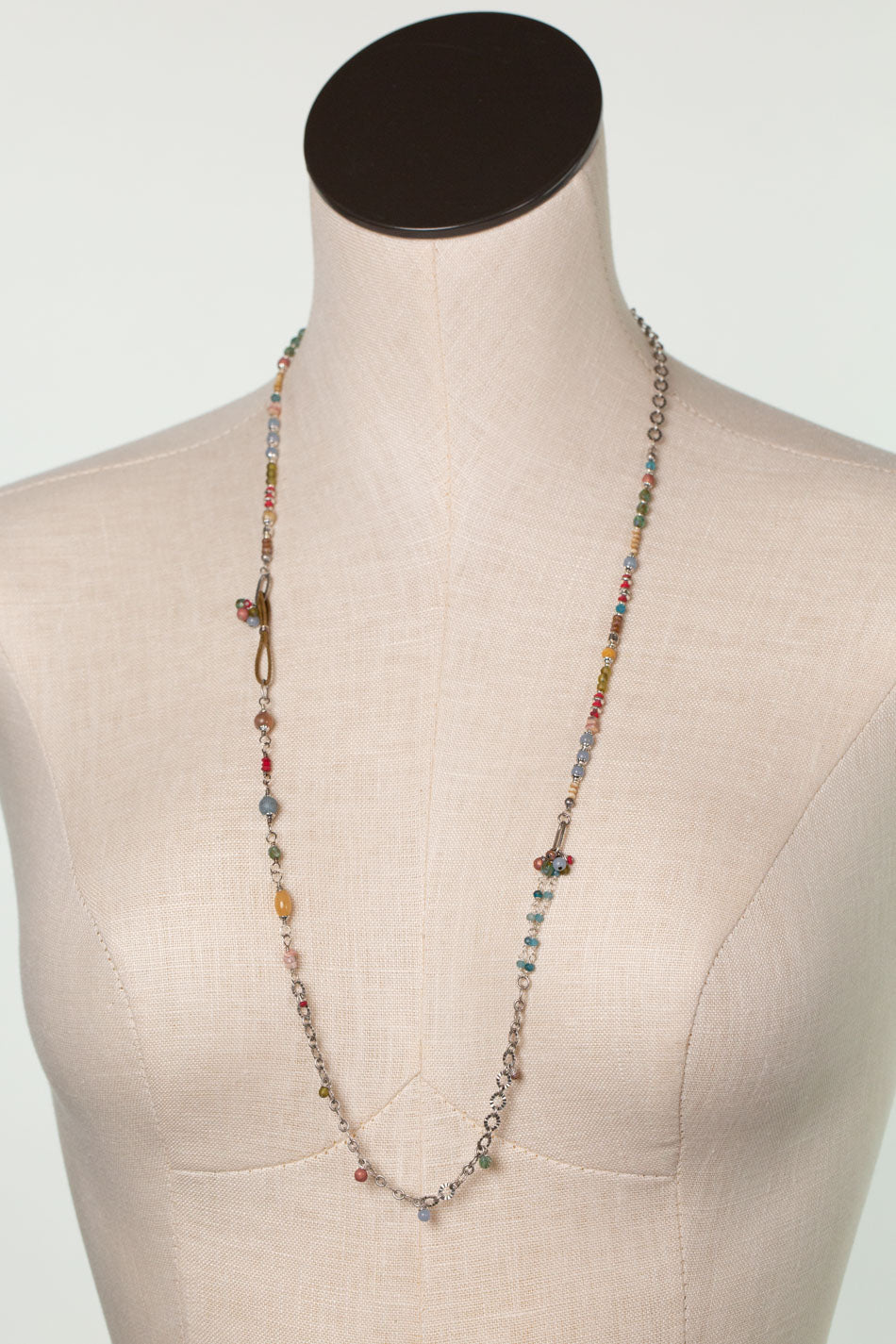 Leilani 30.5-32.5" Peach Moonstone, Olive Jade, Neon Apatite Collage Necklace