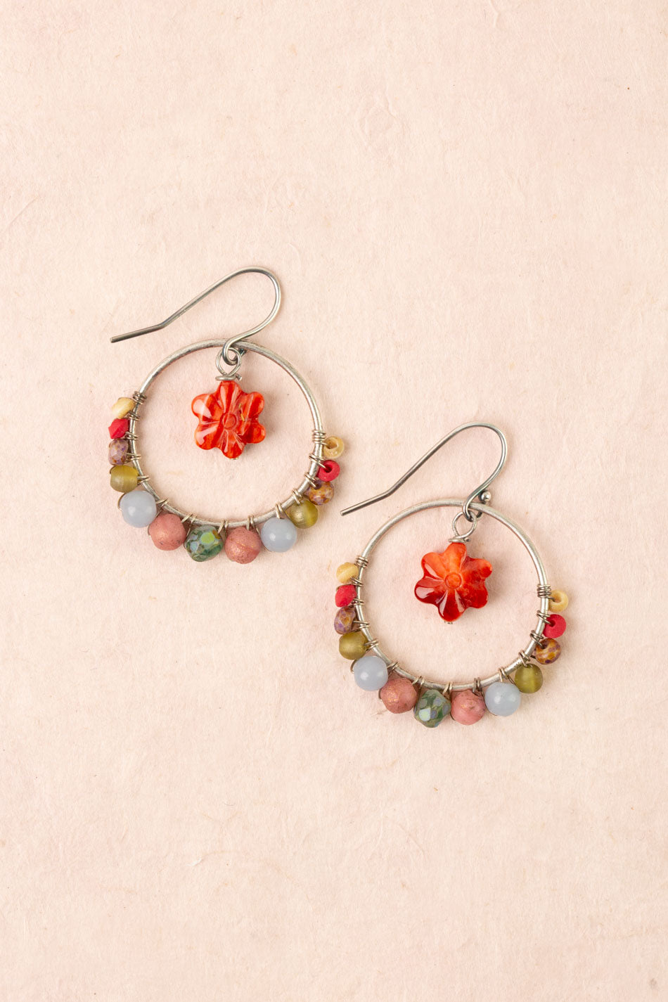 Leilani Chalcedony, Spiny Oyster Flower, Czech Glass Hoop Earrings