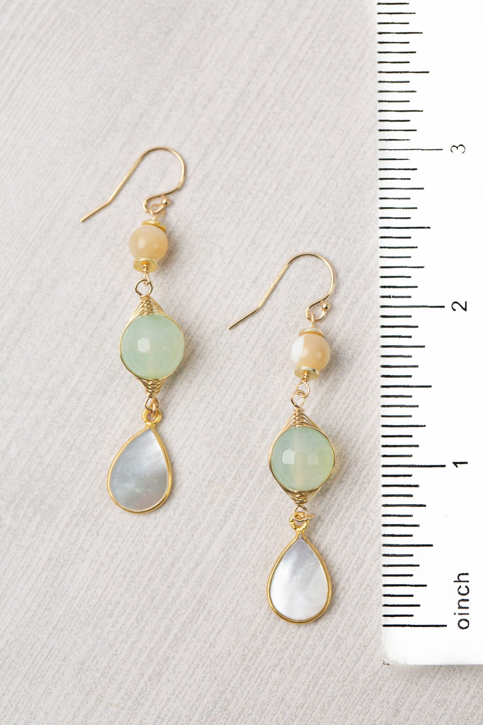 Limited Edition Faceted Chalcedony With Mother Of Pearl Teardrop Bezel Herringbone Earrings