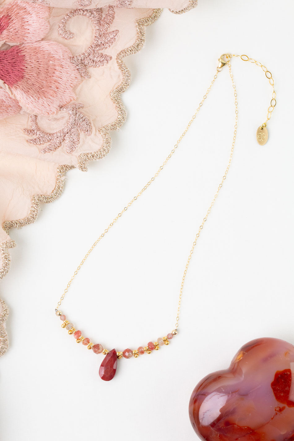 Love 15.5-17.5" Strawberry Quartz Simple Necklace