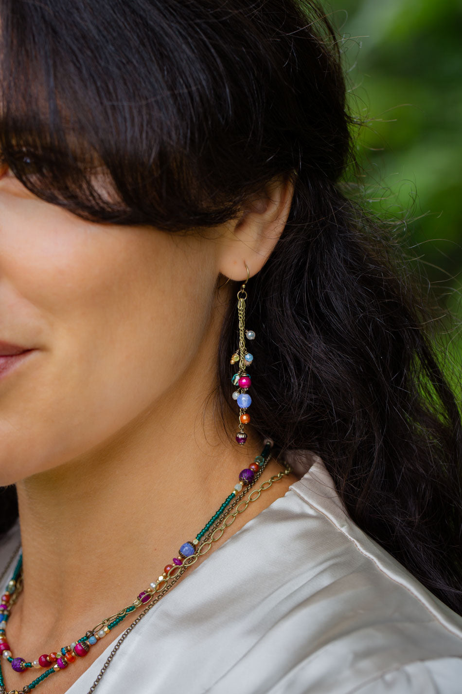 Mardi Gras Czech Glass, Pearl, Jade Tassel Earrings