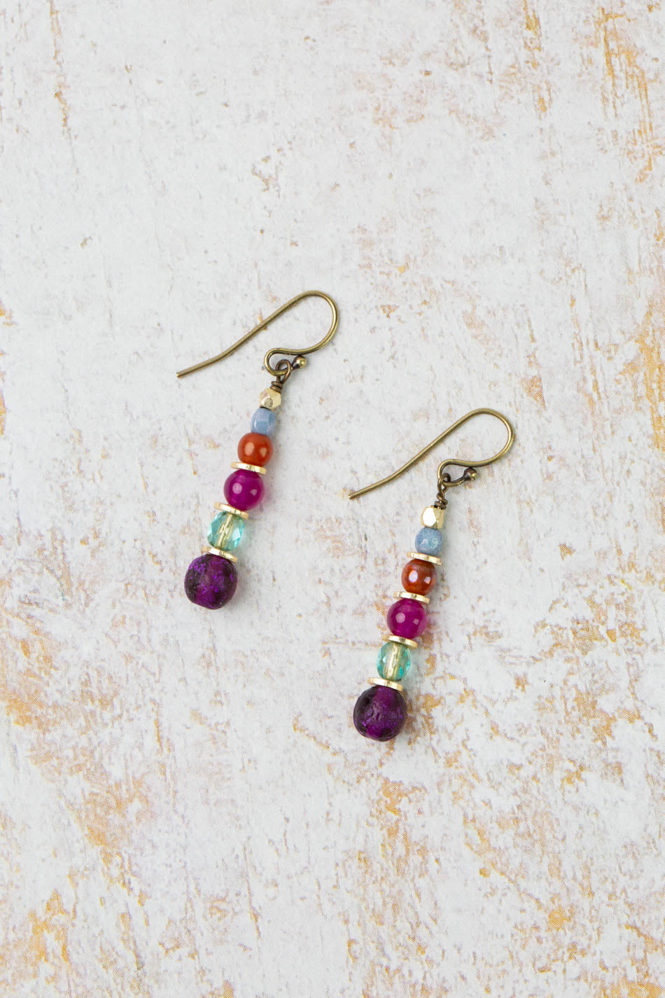 Mardi Gras Czech Glass Stacked Simple Earrings