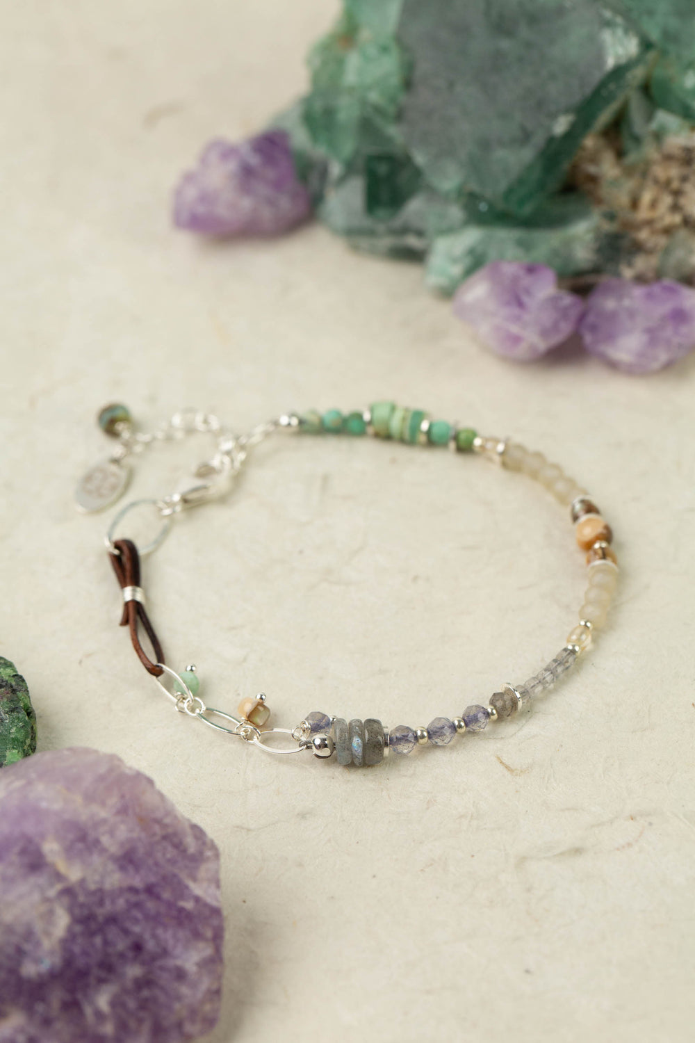 Mystic 7.5-8.5" Turquoise, Abalone, Labradorite Simple Bracelet