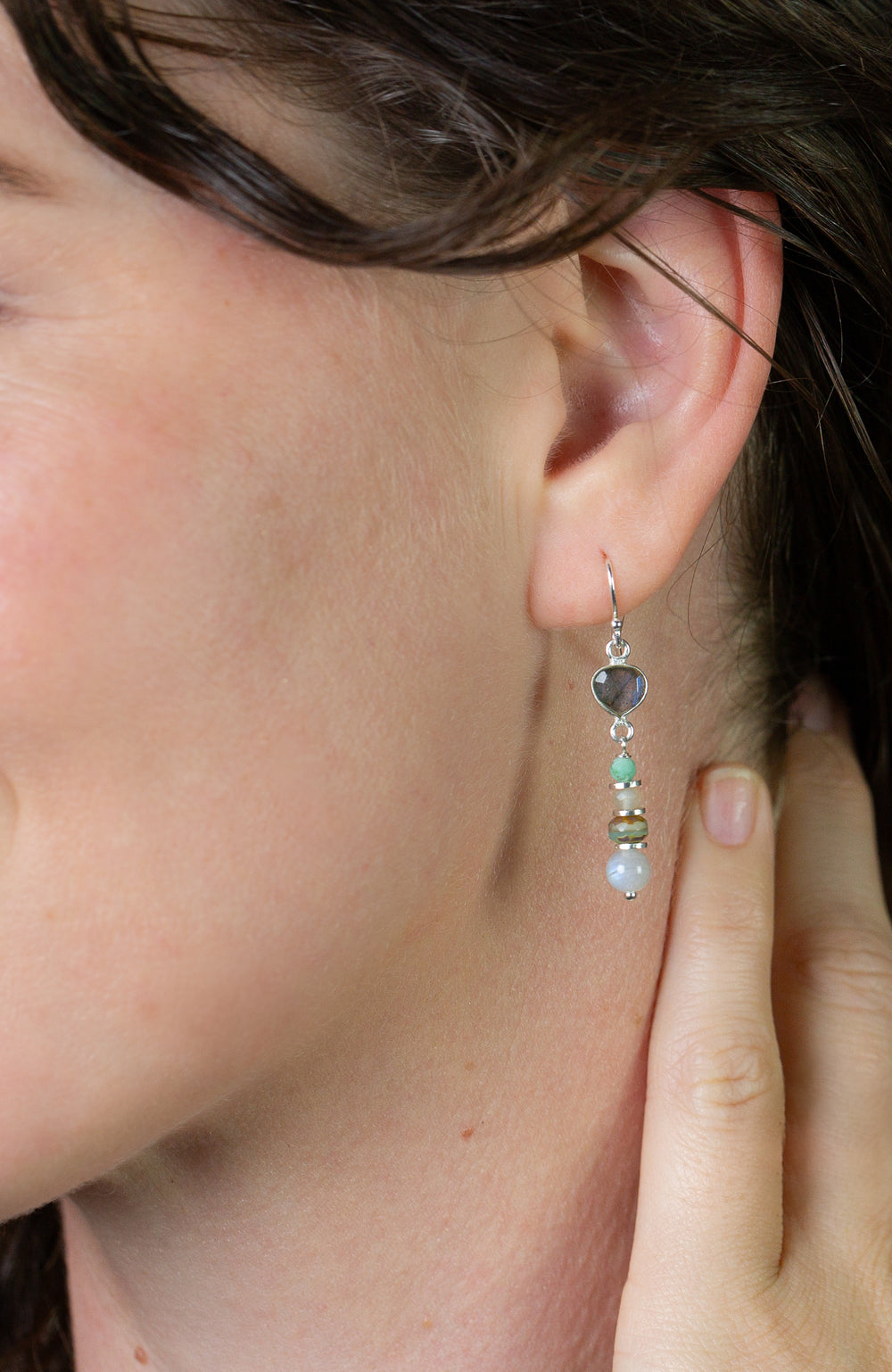 Mystic Labradorite Bezel Gemstone Dangle Earrings