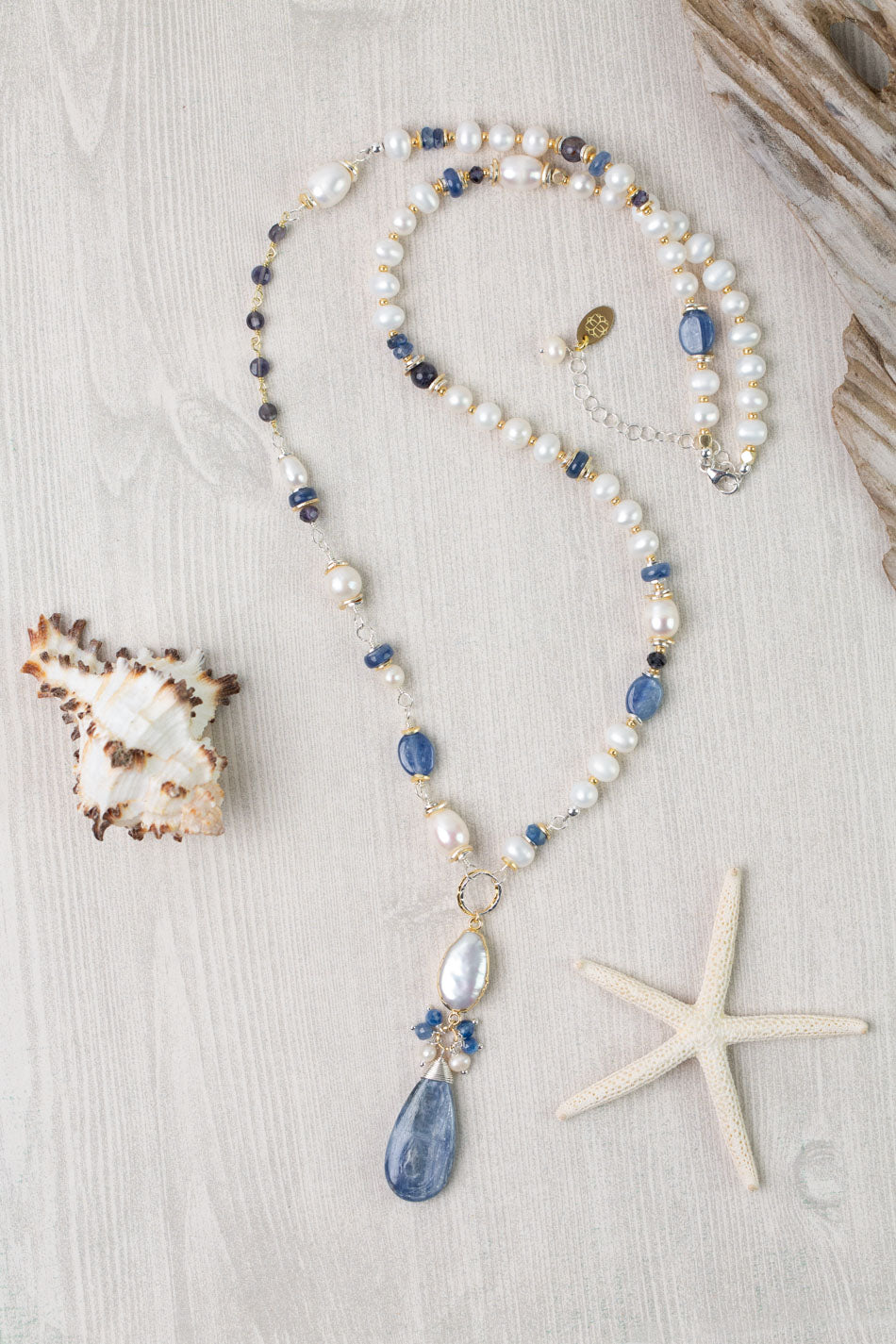 Seaside 21-22" Freshwater Pearl, Kyanite, Iolite Collage Necklace