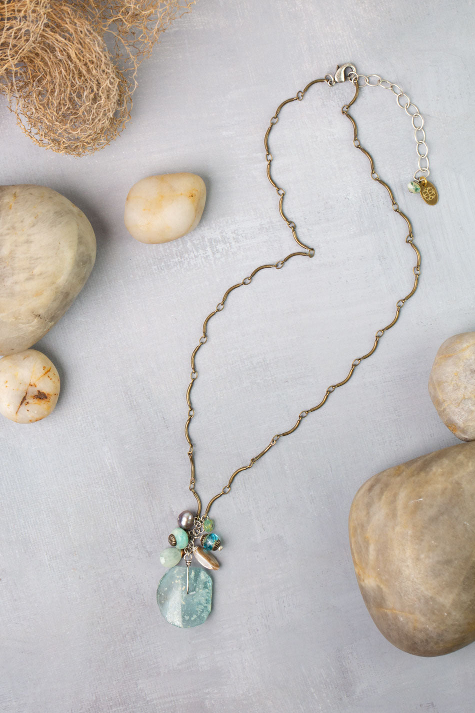 Venetian Dreams 17-19" Freshwater Pearl, Abalone Shell, Amazonite With Roman Glass Cluster Necklace