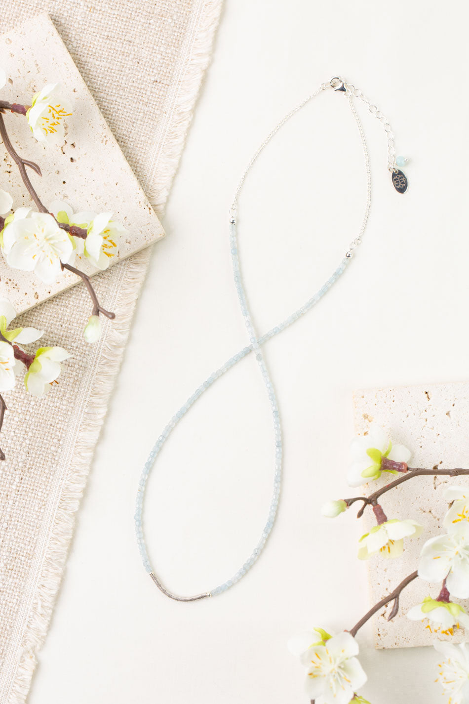 Cave Spring 16.5-18.5" Blue Lace Chalcedony, Chrysoprase, Green Moss Aquamarine with Phosphosiderite Simple Necklace