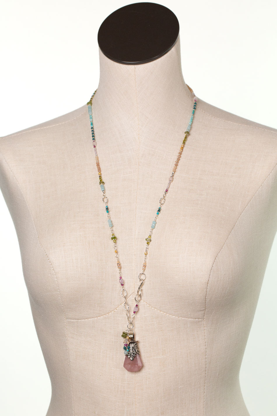 Primrose 31.5" Kunzite, Turquoise, Amazonite with Rose Quartz Pendant Cluster Necklace