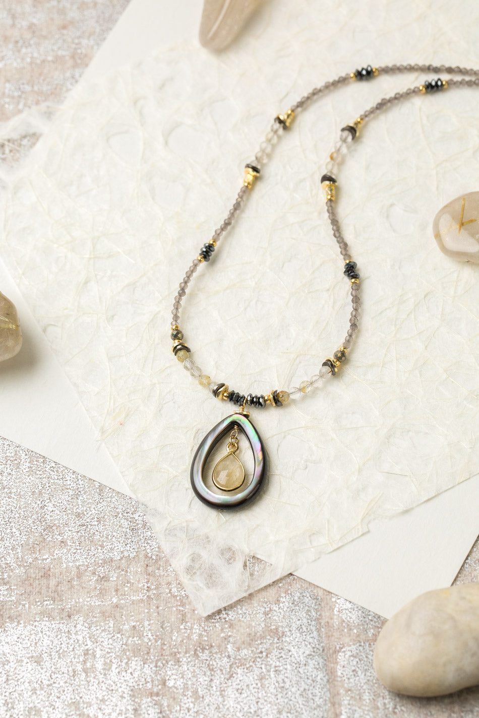 Blue Moon 27.5-29.5" Labradorite, Abalone Shell, Sodalite, Lapis Lazuli, Pyrite Collage Necklace