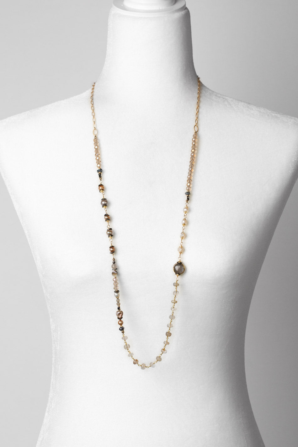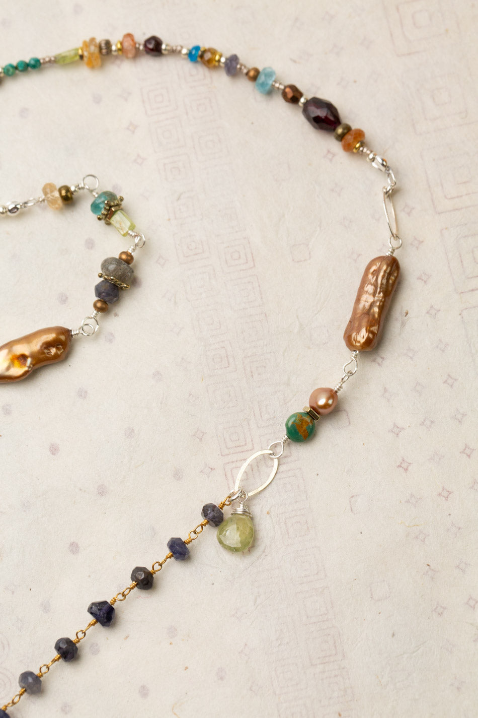 Thrive 36-38" Citrine Iolite, Blue Apatite, Peridot, Labradorite, Czech Glass, Sunstone, Moonstone, Chyrsocolla, Brown Freshwater Pearl Collage Necklace