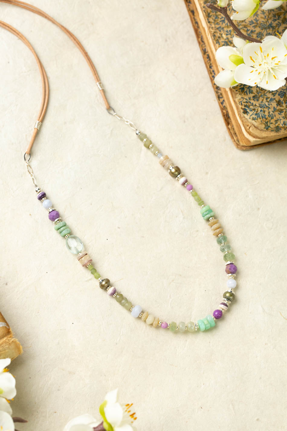 Cave Spring 21-23" Blue Lace Chalcedony, Chrysoprase, Green Moss Aquamarine With Phosphosiderite Collage Necklace