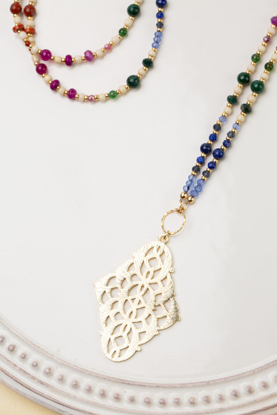 Sacred Heart 35-37" Lapis, Czech Glass, Pietersite Collage Necklace