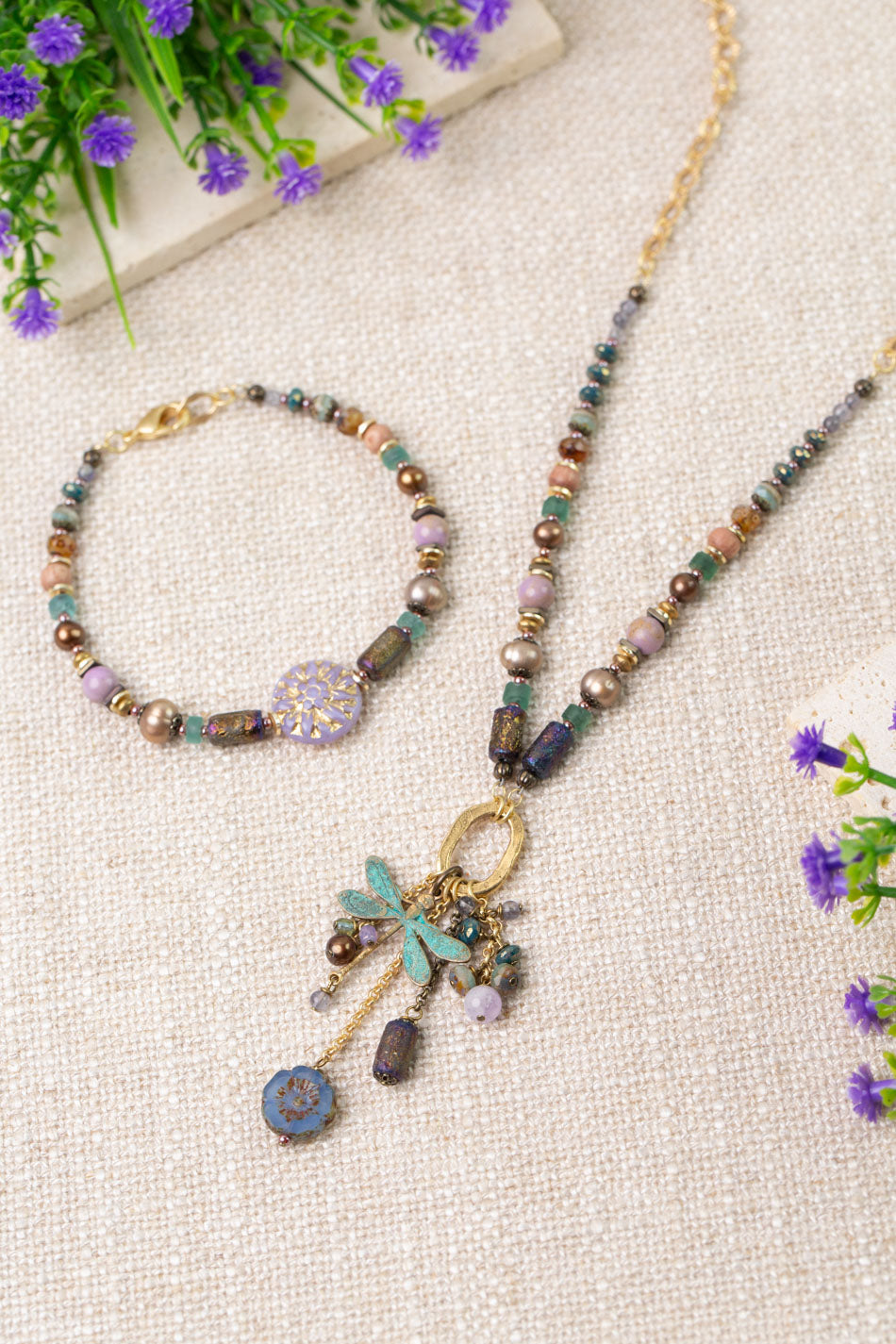 Folklore 17-19" Phosphorite, Czech Glass, Freshwater Pearl Dragonfly Collage Necklace