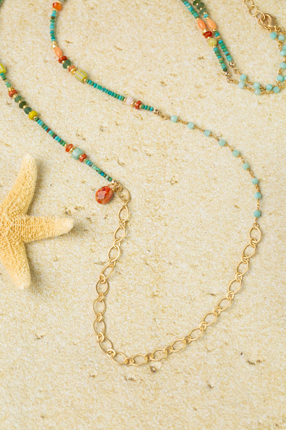 Mango Tango 36.5-38.5" Roman Glass, Carnelian, Red Jasper, Turquoise, Amazonite Collage Necklace