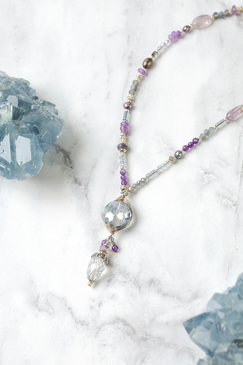 Folklore 19.25 or 27" Tanzanite, Czech Glass, Freshwater Pearl Collage Necklace