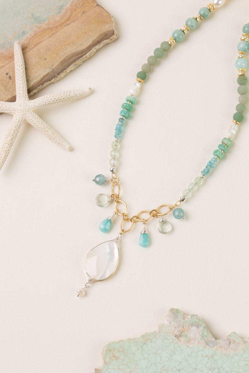 Serenity 19.5-21.5" Freshwater Pearl, Amazonite, Aquamarine With Mother Of Pearl Collage Necklace
