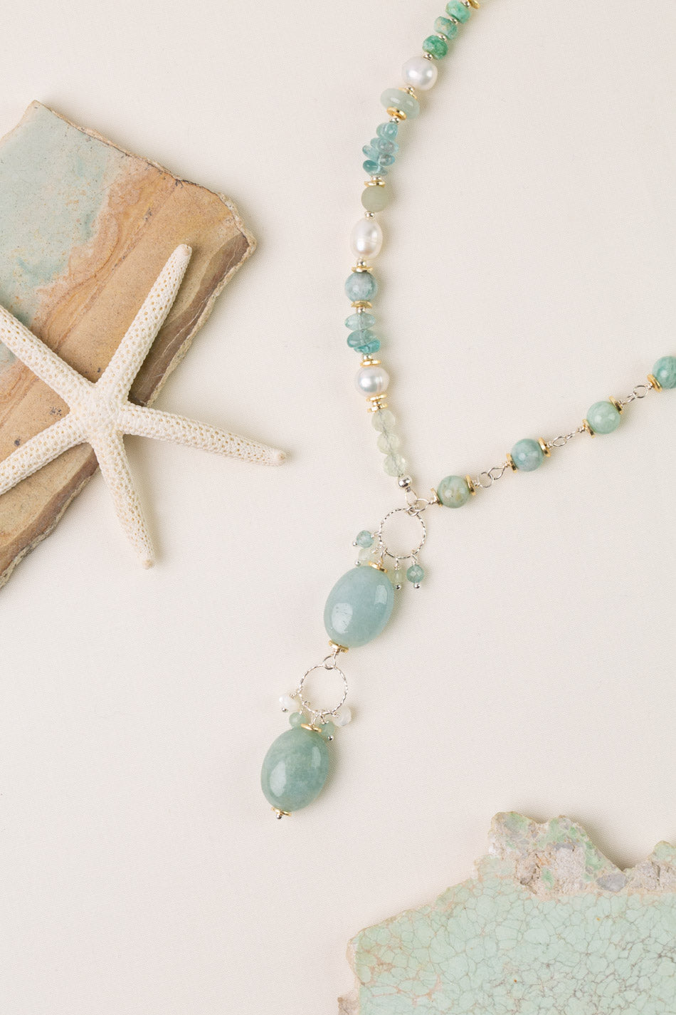 Serenity 26-28" Freshwater Pearl, Amazonite, Apatite Collage Necklace