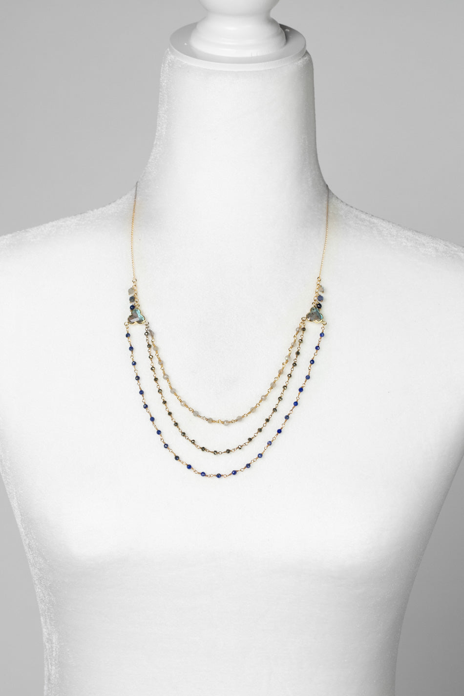 Blue Moon 21-23" Pyrite, Labradorite, Lapis Lazuli Multistrand Necklace