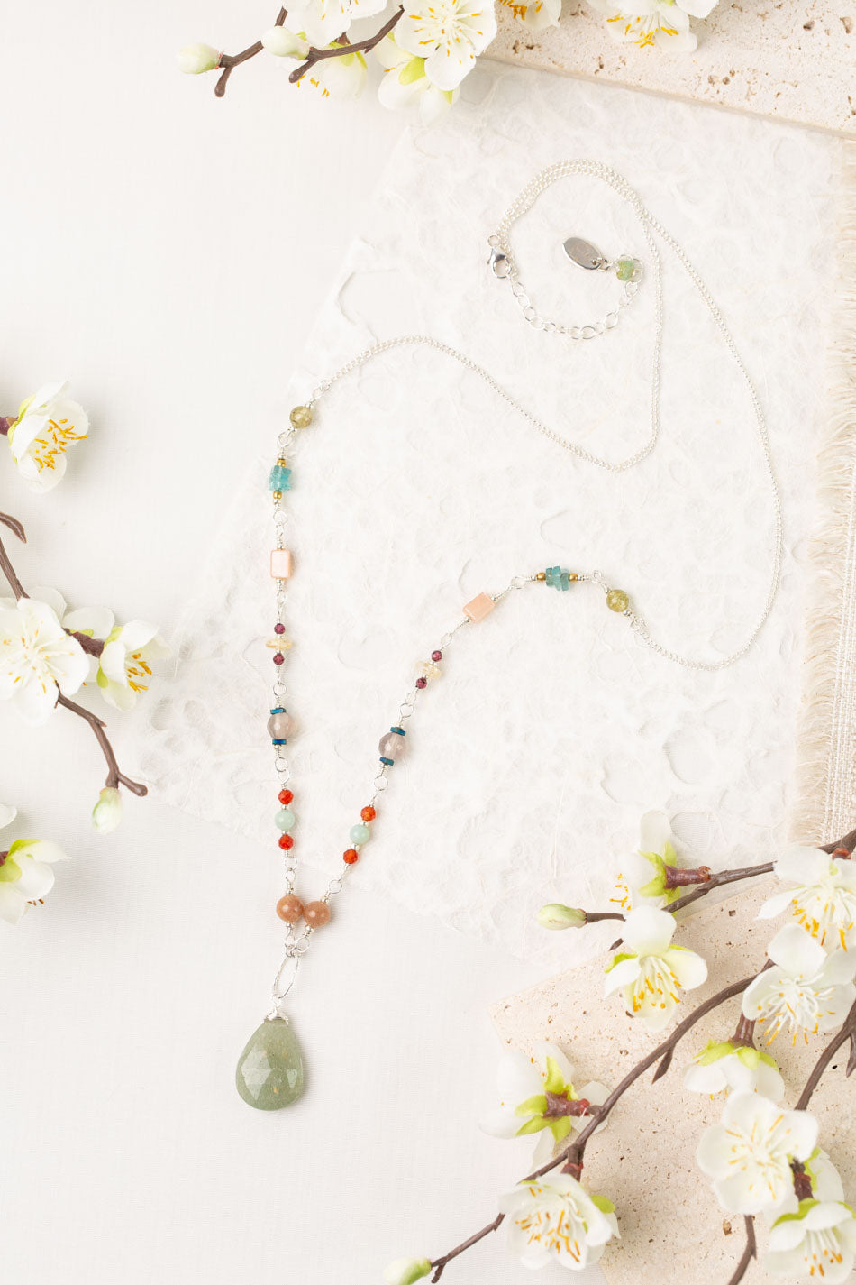 Gentle Breeze features a delicate palette of pastel stones, earthy tones, and subtle shimmer. Each piece is handcrafted with a thoughtful blend of gemstones, creating a harmonious dance of color and texture.