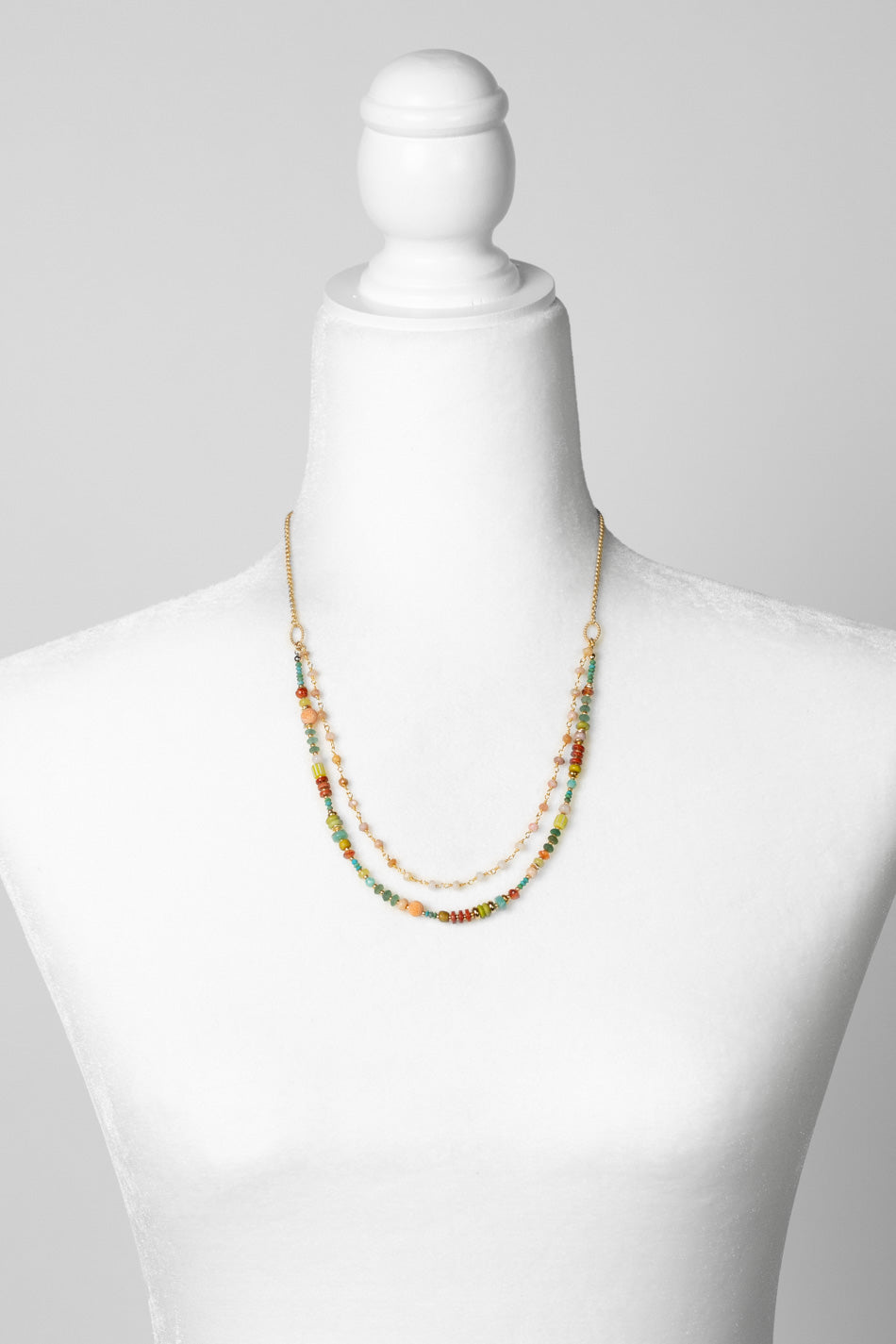 Mango Tango 24.5-26.5" Turquoise, Red Jasper, Amazonite Multistrand Necklace