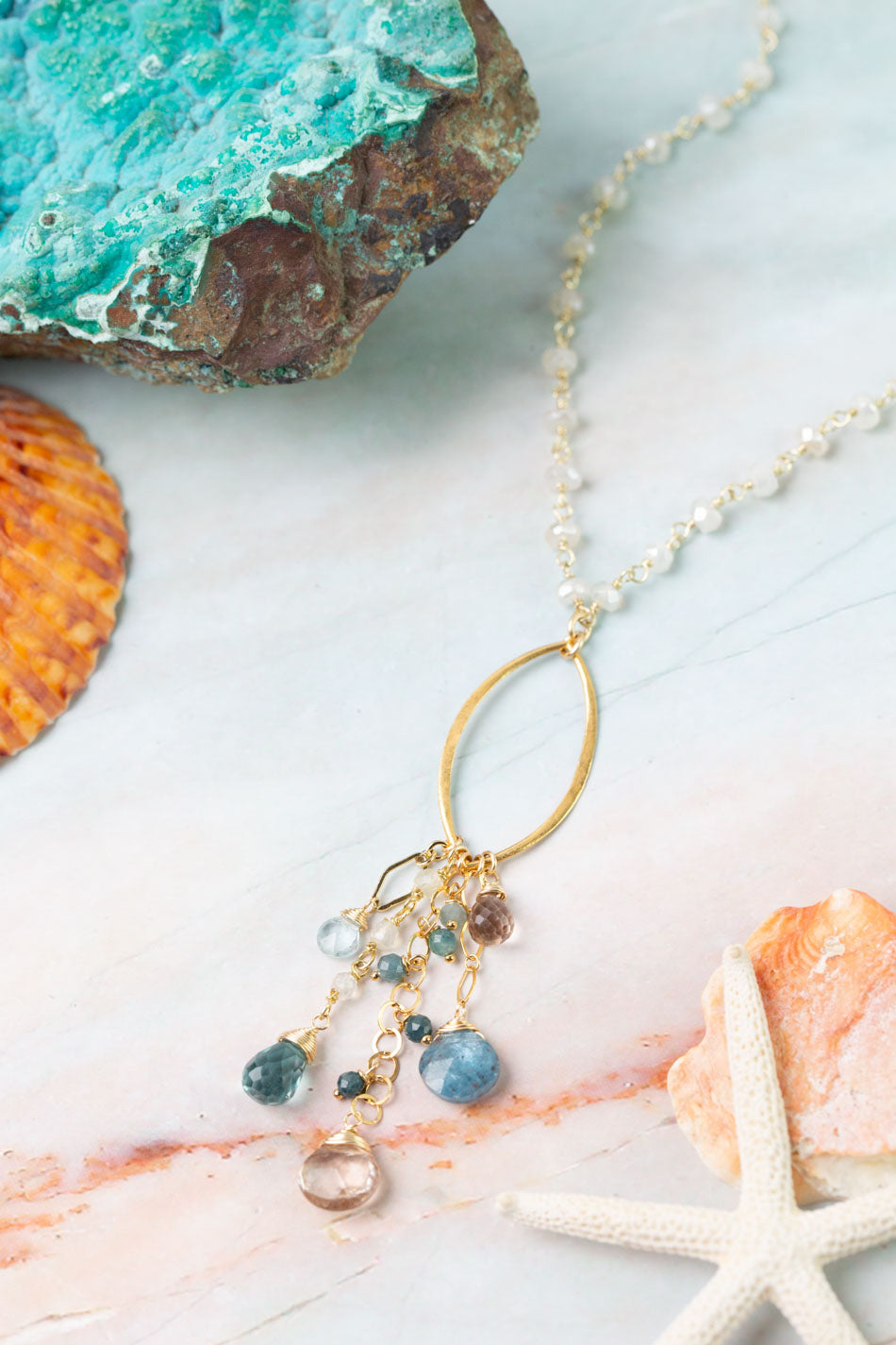 Ocean Waves 21-23" Smokey Quartz, Chalcedony, Kyanite Cluster Necklace