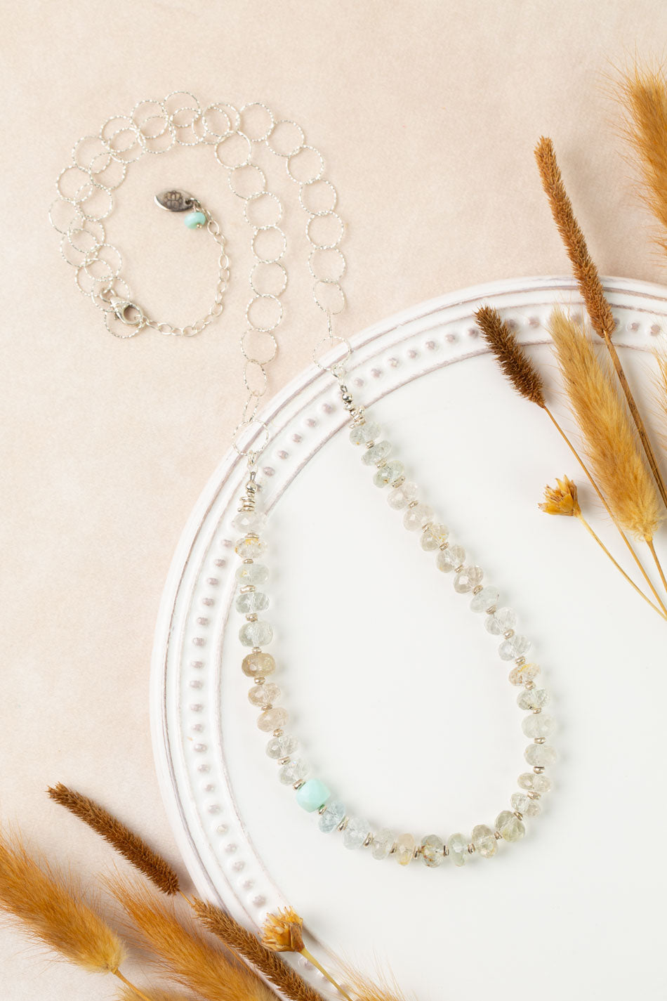 One Of A Kind 24.25-26.25" Green Aquamarine, Golden Rutilated Quartz, Amazonite Simple Necklace