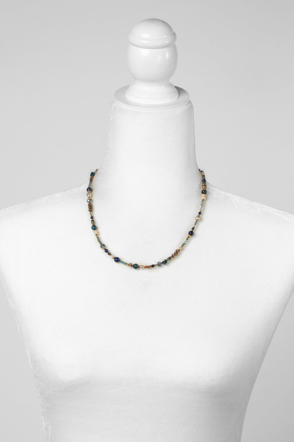Starry Night 18-20" Lapis Lazuli, Fresh Water Pearl, Czech Glass Collage Necklace