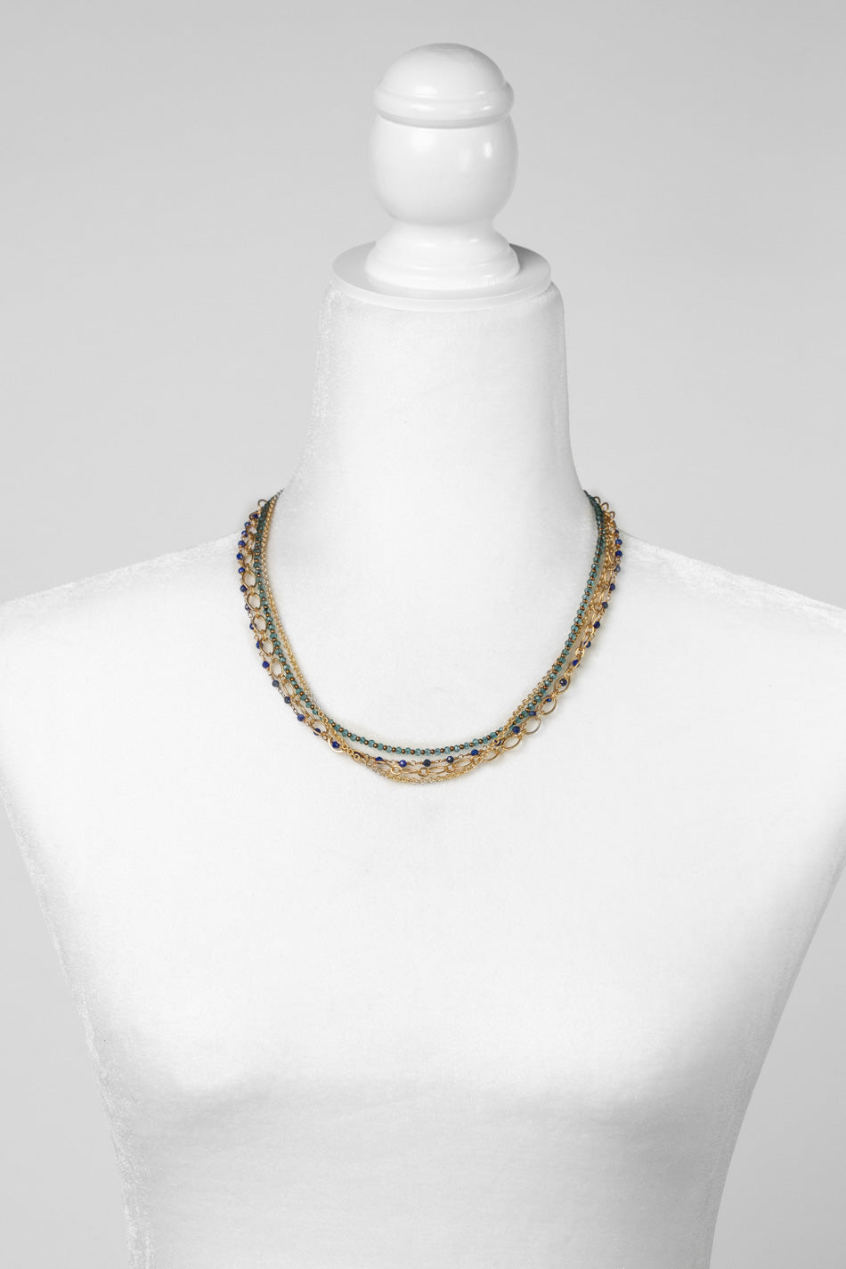 Starry Night 20-22" Lapis Lazuli, Blue Crystal Multistrand Necklace