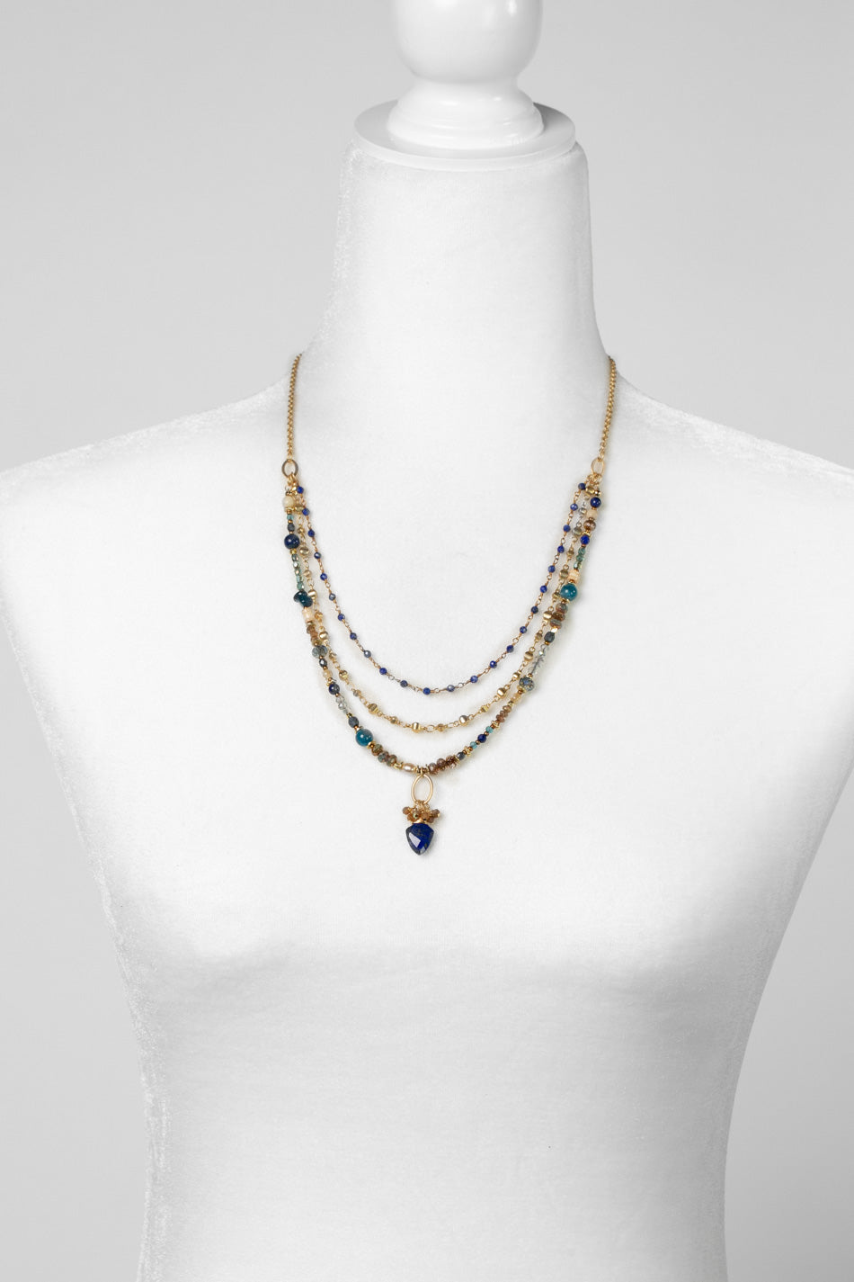 Starry Night 21-23" Lapis, Apatite, Crystal Multistrand Necklace