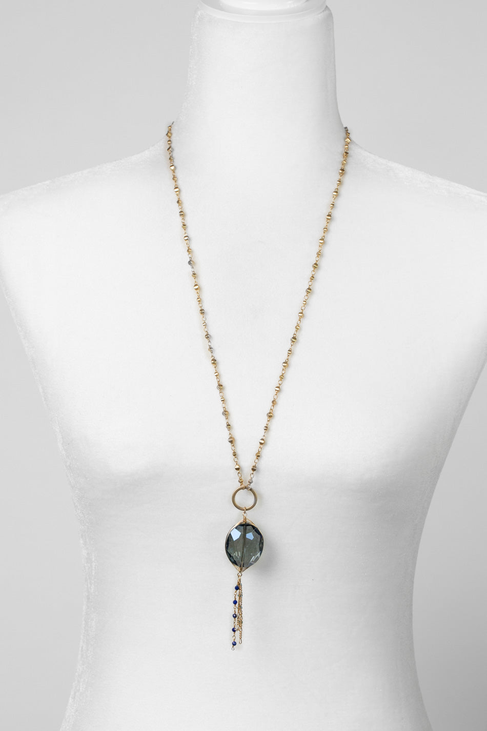 Starry Night 29-31" Crystal, Apatite, Lapis Lazuli Tassel Necklace