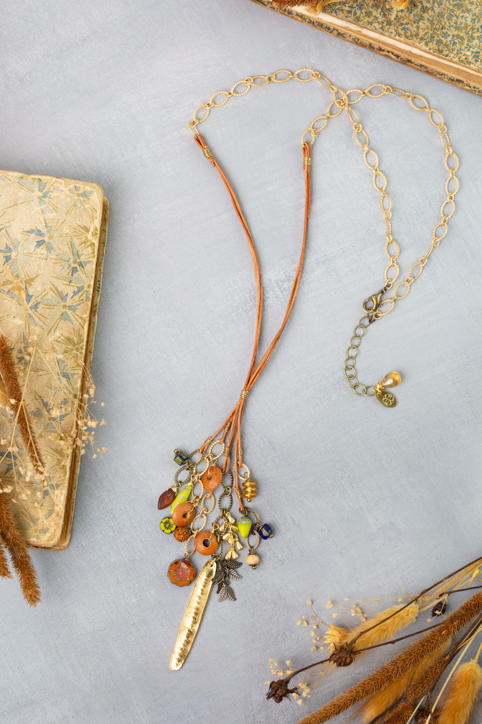Atlas 30.5-32.5" Roman Glass, Honey Opal With Agate Teardrop Briolette Statement Necklace
