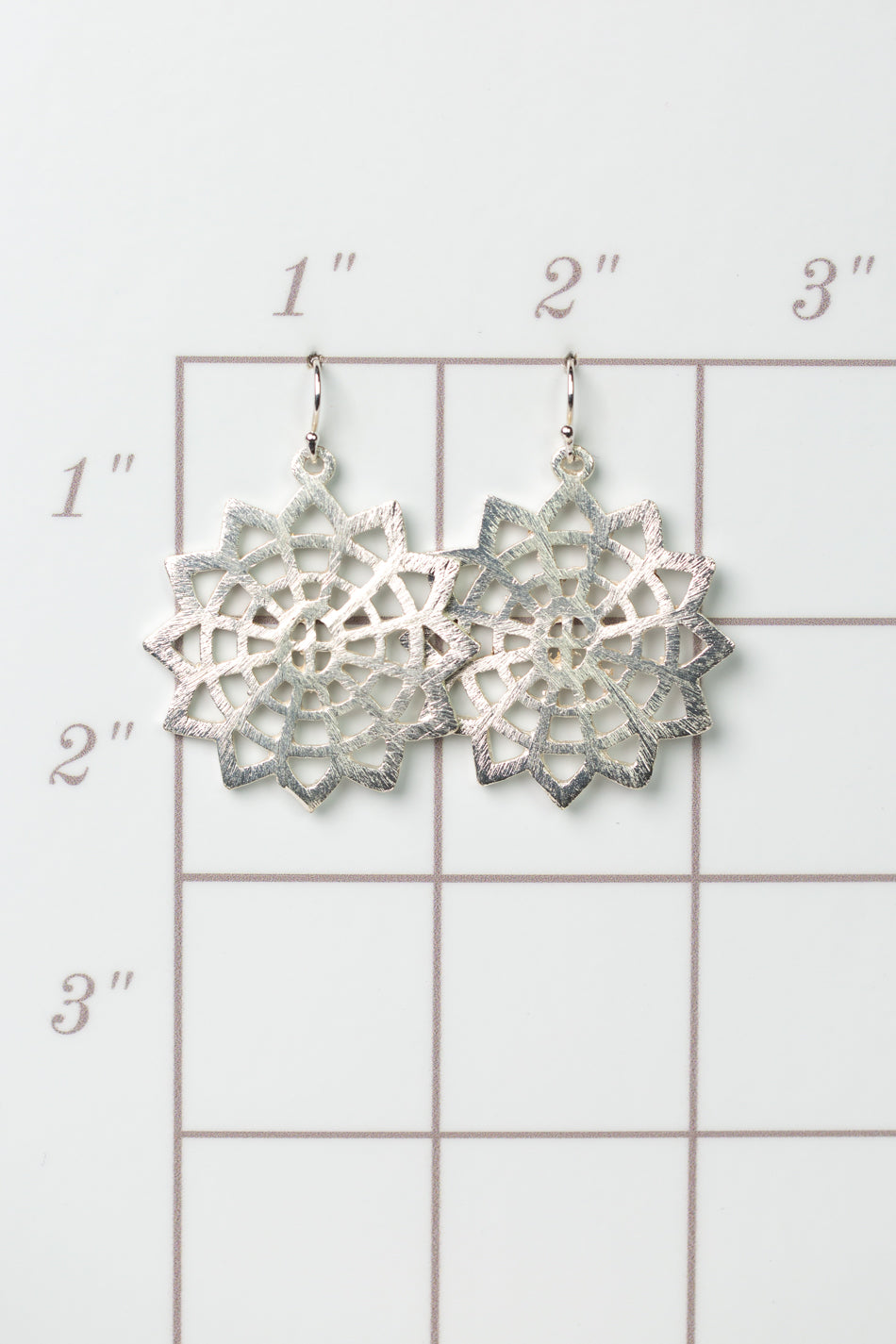 Brushed silver earrings in a fun sunburst design.