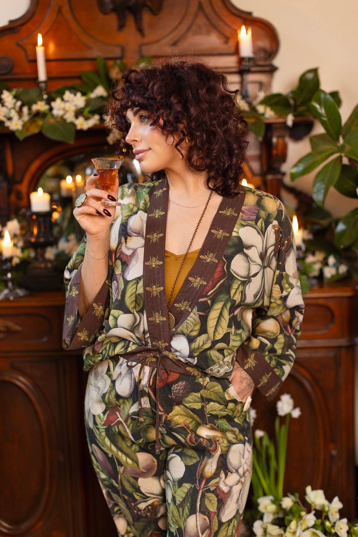 Fleur De Lune Pixie Duster Crop Kimono w/ Florals & Bees