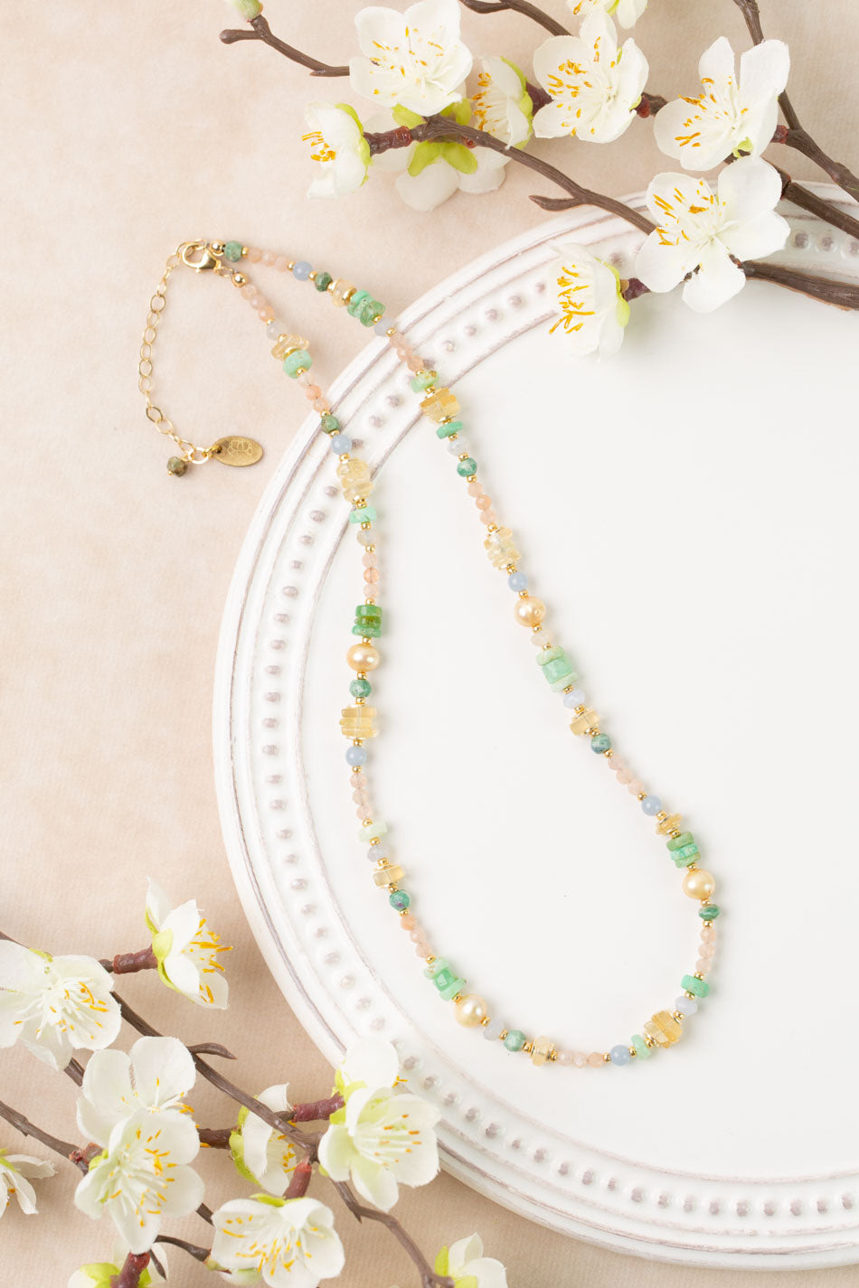 The Bellini Collection features, pastel gemstones in blush, seafoam, sky blue, and soft citrus hues mingle with delicate pearls and warm gold accents, creating pieces that feel light, joyful, and refined. Each design is handcrafted to layer beautifully or shine on its own easy, feminine jewelry made to add a fresh splash of color to everyday moments and special occasions alike.