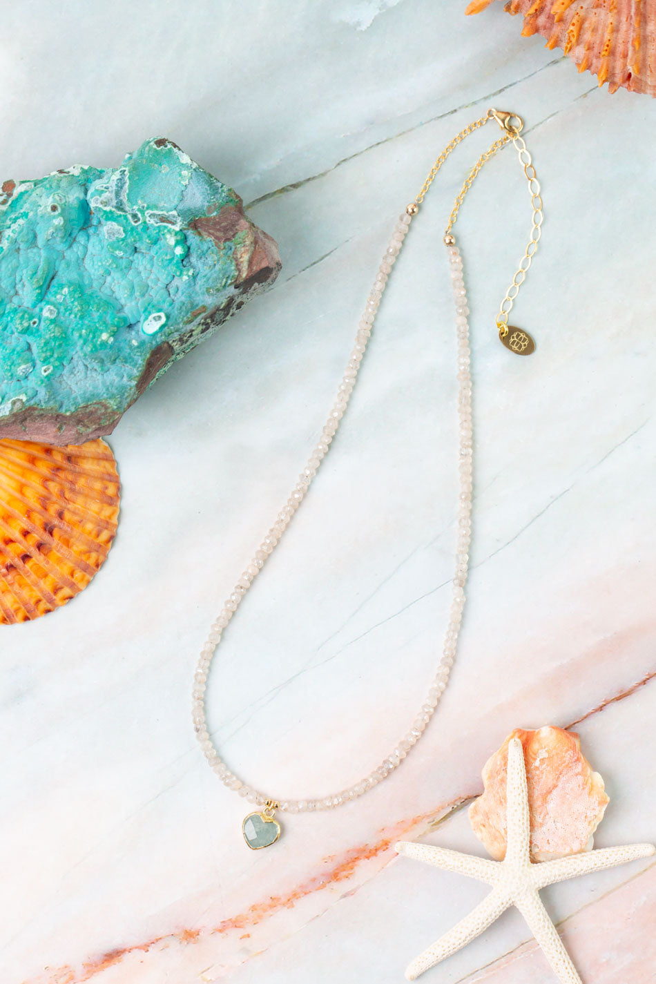 Ocean Waves 16-18" Aquamarine Heart Simple Necklace