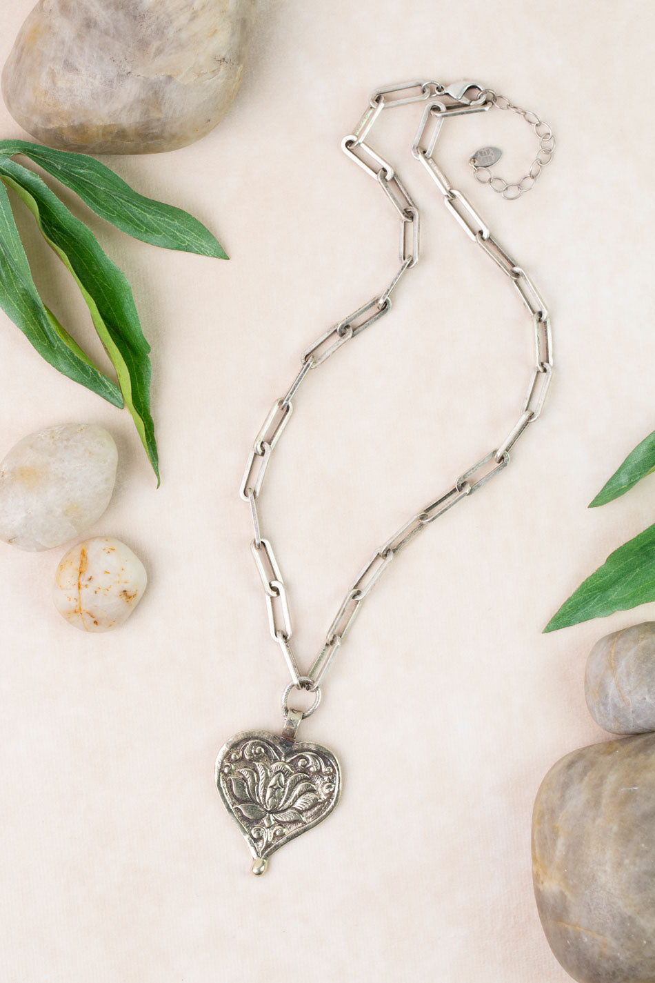 One Of A Kind 18.5-20.5"Paperclip Chain with Tibetan Heart Statement Necklace