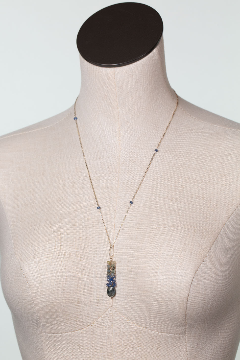 One Of A Kind 22-24" Green Moss Aquamarine, Kyanite Statement Necklace
