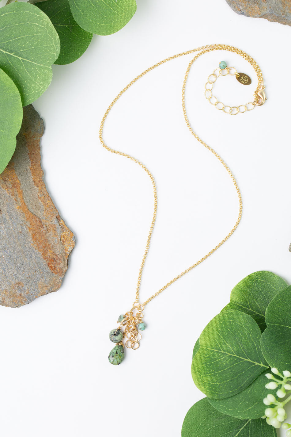 Tranquil Gardens 20.25-22.25" African Turquoise Cluster Necklace