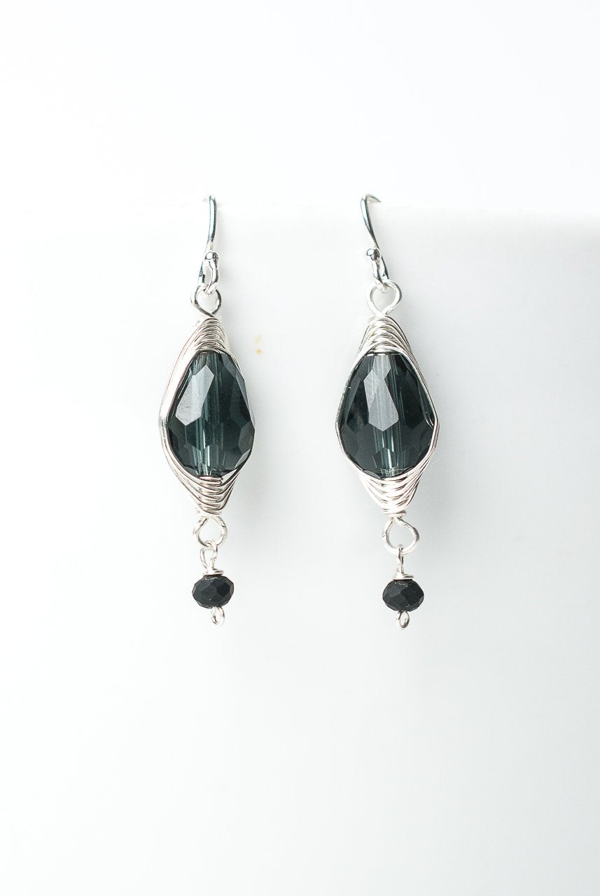 An Anne Vaughan Designs classic! These handcrafted earrings for women feature a dark blue teardrop crystal wrapped in our signature herringbone weave and accented by a crystal drop. A perfect addition to complete any look!