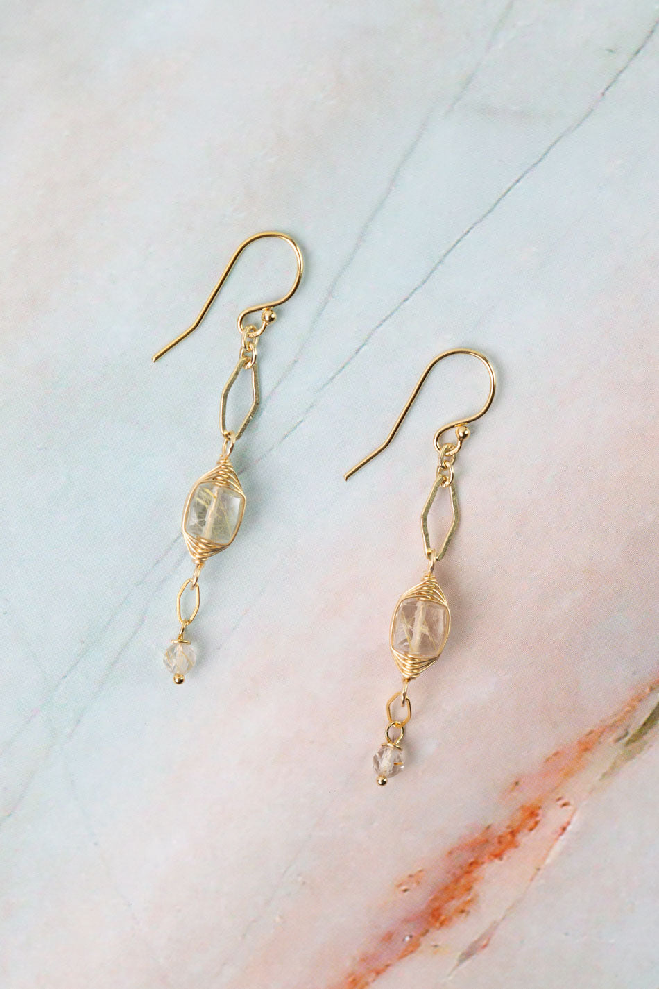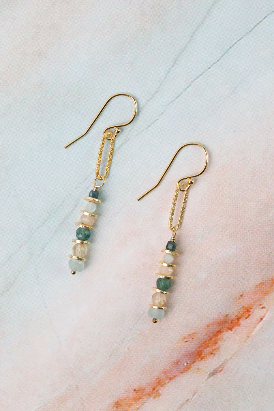 Bellini Peach Moonstone, Chrysoprase, Citrine Dangle Earrings