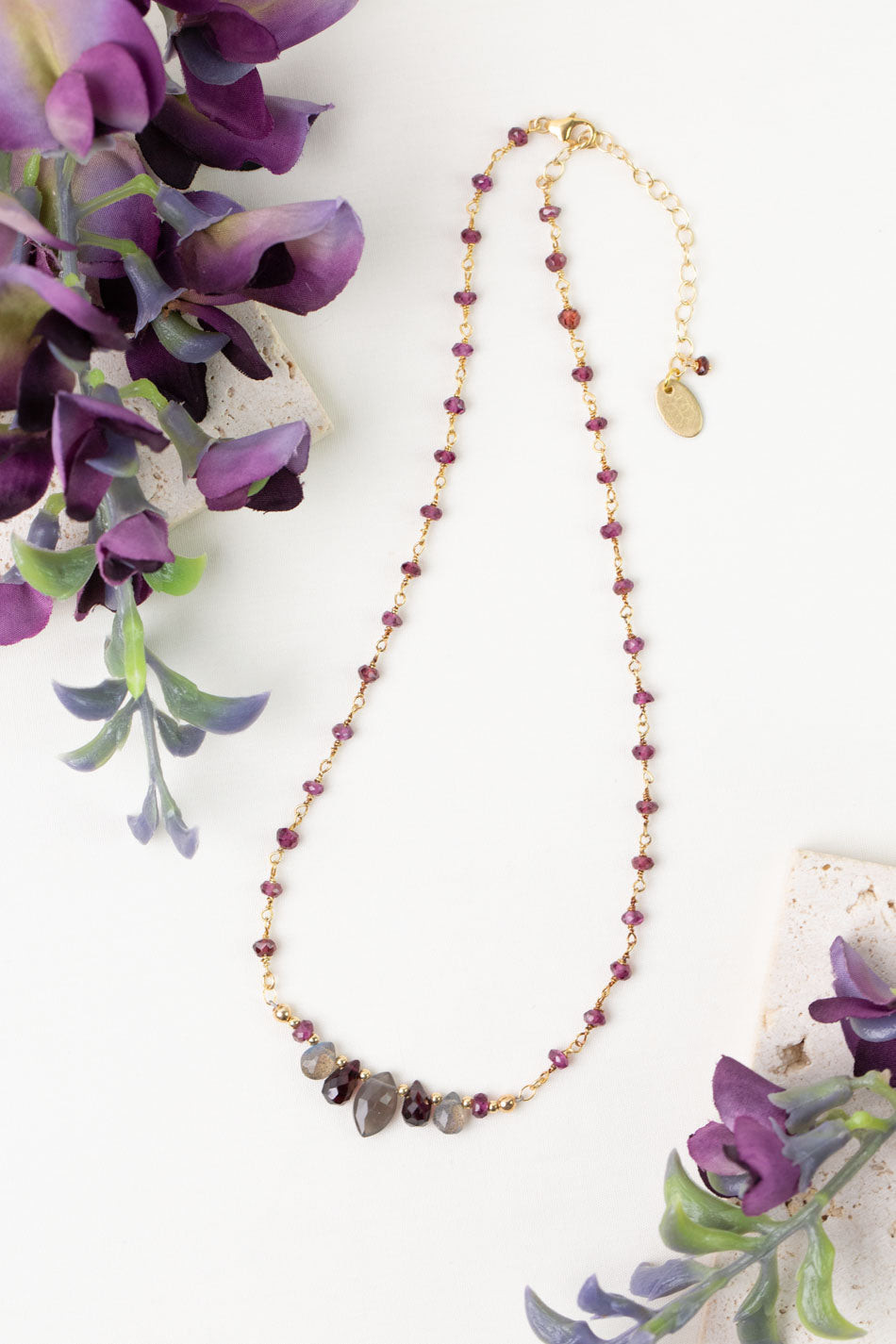 One Of A Kind 14.75-16.75" Cat's Eye Amethyst with Labradorite Simple Necklace