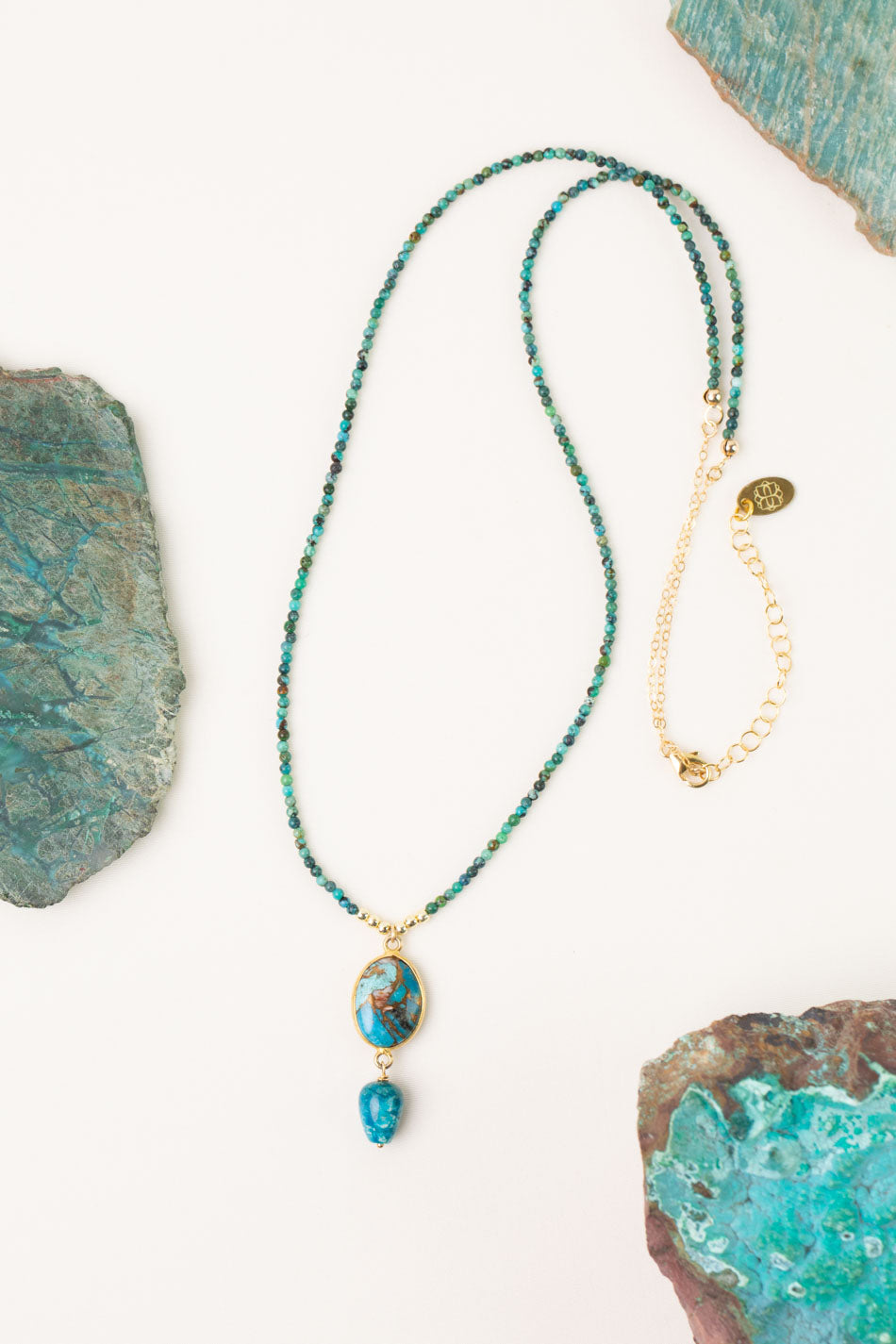 One Of A Kind 24.5-26.5" Chrysocolla, Jade, Tanzanite with Malachite Statement Necklace