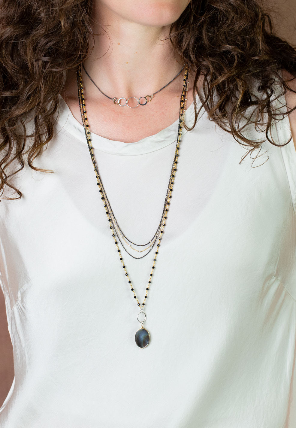 Nightfall 16 or 31" Hematite With Abalone Simple Necklace