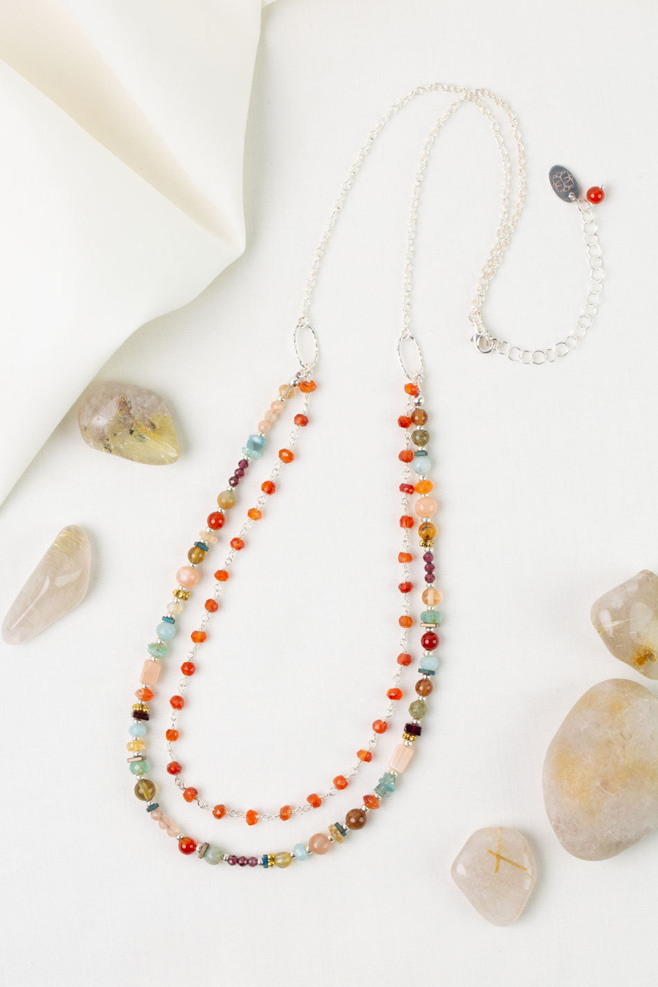 One Of A Kind 22-24" Carnelian, Garnet, Apatite Multistrand Necklace