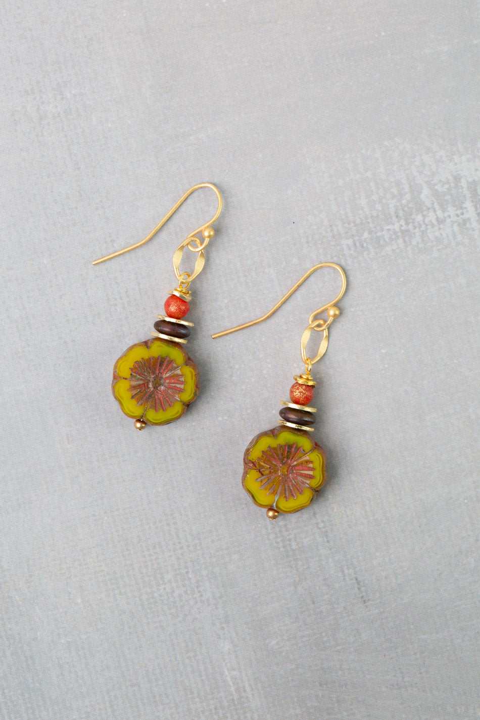 Prosperity Czech Glass Flower Simple Earrings